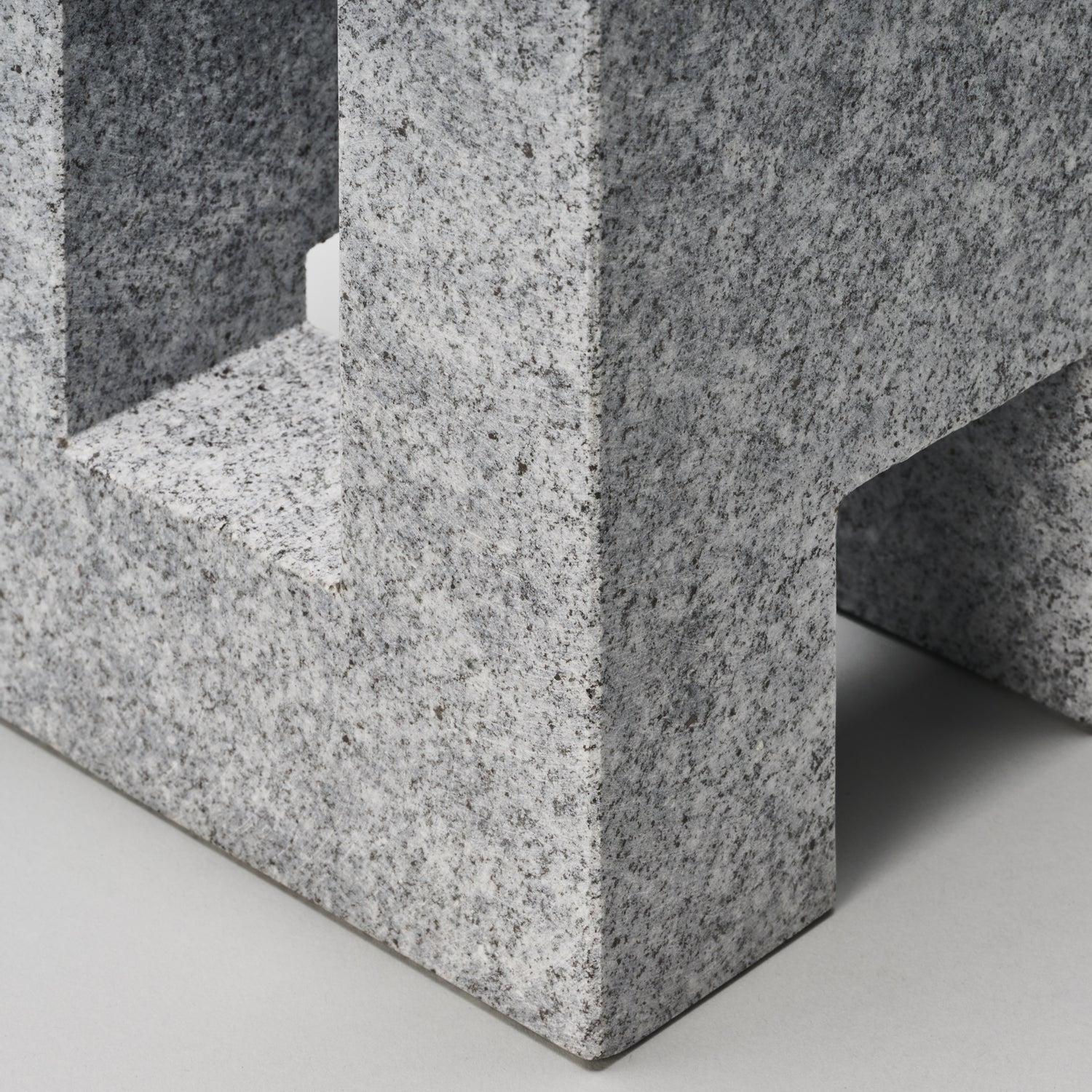 A bicycle stand that utilizes the weight of the stone for stability. Its simple design creates a calm and understated look, allowing it to blend seamlessly into various spaces.