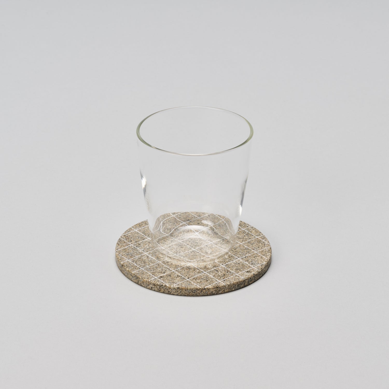 フラットな円形状のコースターです。グラスやカップを置くほか、乾き物や小物を置くプレートやプランタープレートなどにもお使いいただけます。表面のラインは字彫りの技術により彫刻しています。