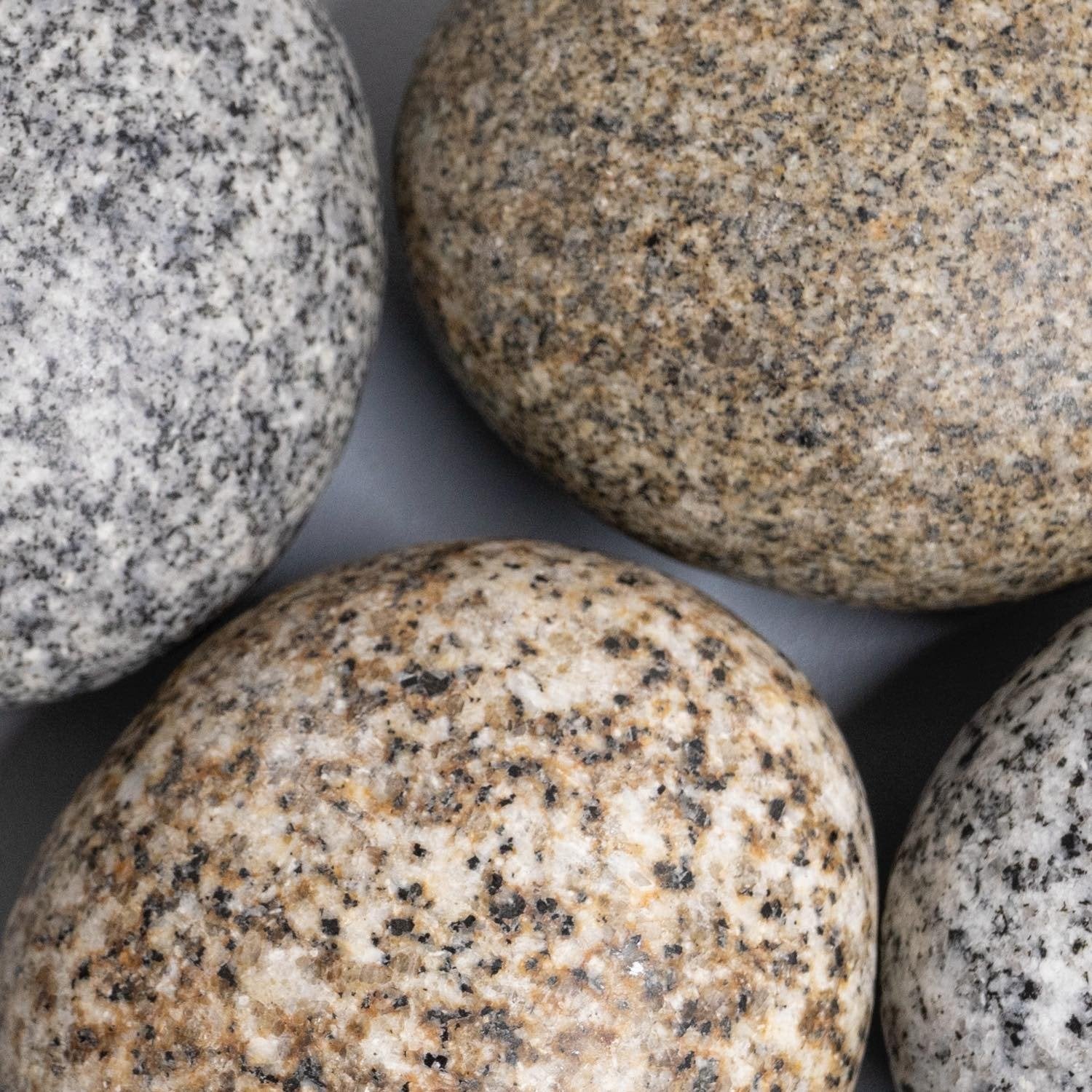 the smooth stones that have been polished by time at the bottom of streams and rivers. Perfectly smooth and cool to the touch, these stones can offer peace of mind to the beholder and add charm to any room.