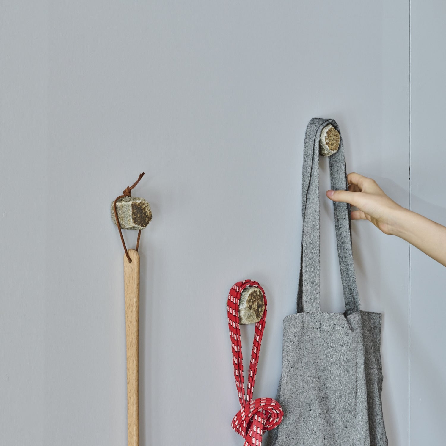 石の自然な表情を活かしたフックです。何も掛けていないときも自然石の豊かな表情を感じることができます。